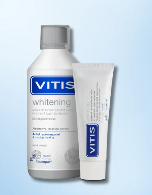 De kracht van VITIS Whitening zit in de revolutionaire DENTAID haprepair technologie met unieke 5-voudige werking.